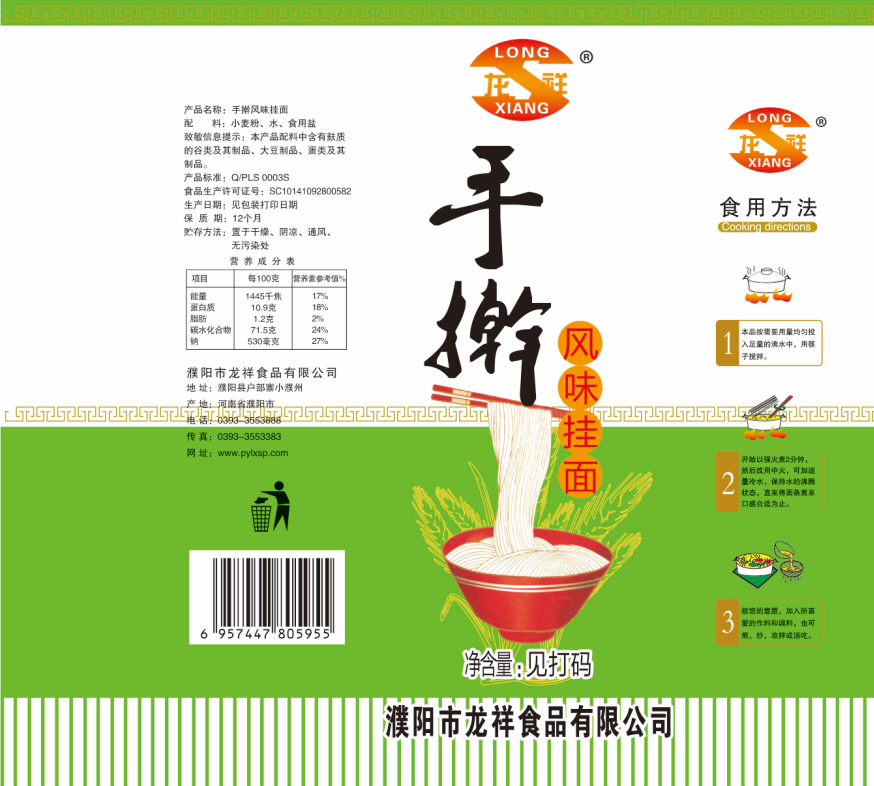 濮陽市龍祥食品有限公司位于河南省濮陽縣戶部寨鎮(zhèn)小濮州,始建于1994年,前期投資200萬元,經(jīng)過幾年的努力,大力開發(fā)市場,由于市場的需求量急劇上升,出現(xiàn)供不應(yīng)求,于2004年擴建,建成一座新型的現(xiàn)代化面粉加工企業(yè),并擁有全國先進全自動生產(chǎn)設(shè)備一套,產(chǎn)量由以前的100噸/天,提高到現(xiàn)在400噸/天。 2012年再次擴大規(guī)模申請為濮陽市龍祥食品有限公司,注冊資金500萬元。2012年又投資800萬元新建掛面生產(chǎn)線一條,日產(chǎn)掛面50噸。龍祥食品有限公司現(xiàn)有職工120余人,總工程師1人,專業(yè)技術(shù)人員10人,經(jīng)濟師1人,會計師1人,銷售人員2人,優(yōu)秀專業(yè)人員20余人。 龍祥公司自創(chuàng)建以來,社會效益十分可觀。公司一直以“今天的質(zhì)量,明天的市場”為信念,“一切為了客戶需求,竭誠追求完美品質(zhì)”為企業(yè)宗旨,走專業(yè)化經(jīng)營和職業(yè)化管理的路子。